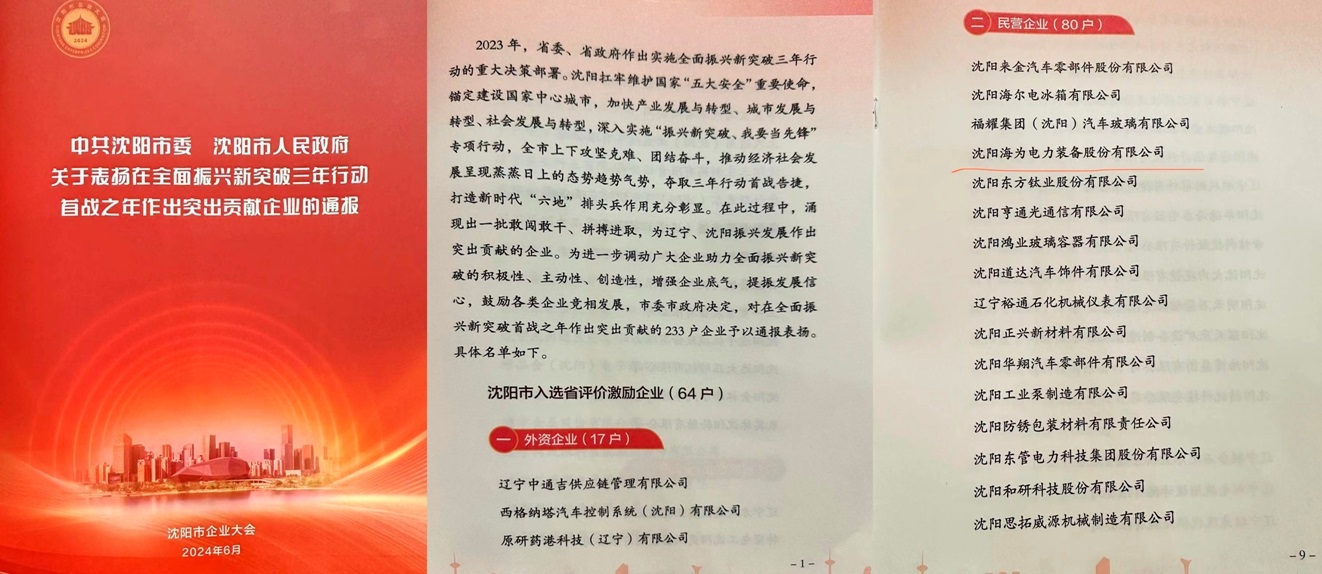 會(huì)議上,中共沈陽市委、市政府對(duì)在全面振興新突破三年行動(dòng)首戰(zhàn)之年,作出突出貢獻(xiàn)的企業(yè)予以通報(bào)表揚(yáng),民營(yíng)企業(yè)共80家入選,海為位列其中。